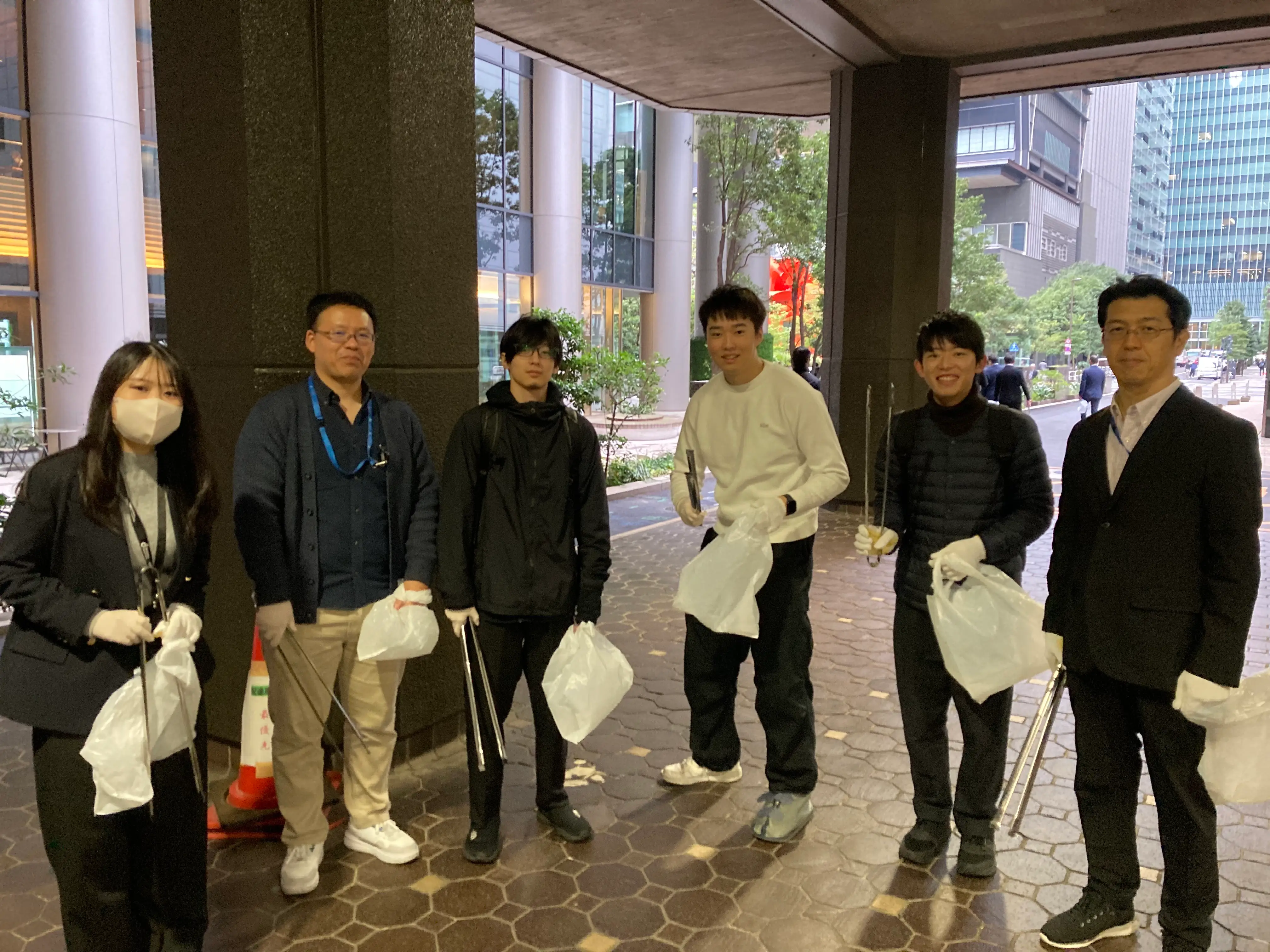「朝から街をきれいにしよう!」という声かけに、部署を越えて多くの社員が集まりました。